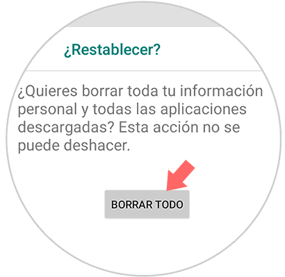El teléfono te pedirá un código de desbloqueo que debes poner y a continuación se mostrará un mensaje de "Borrar todo".