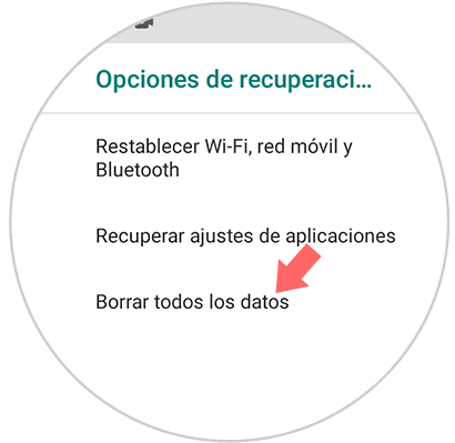 Cuando accedas a las opciones de recuperación, verás una opción que dice "Borrar todos los datos". Selecciona esta opción