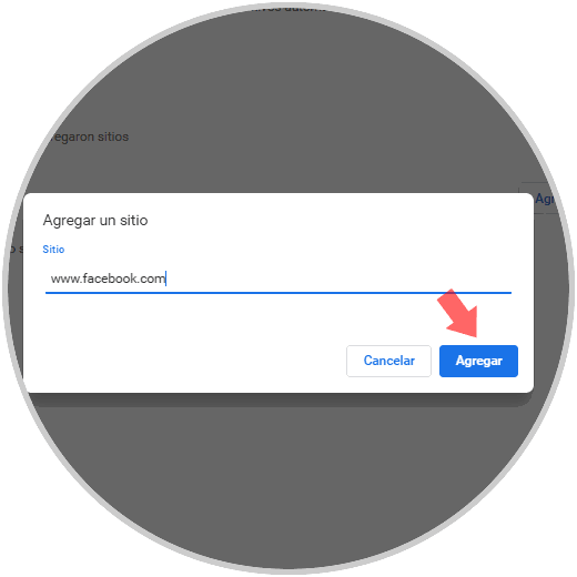 Pulsamos en Agregar para añadir disco sitio y si el sitio maneja diferentes páginas podemos bloquear todo lo relacionado con él ingresando la siguiente sintaxis:
