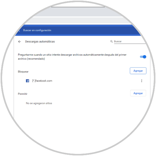 Una vez realizado este proceso podremos ver los sitios bloqueados en la sección de Descargas automáticas: