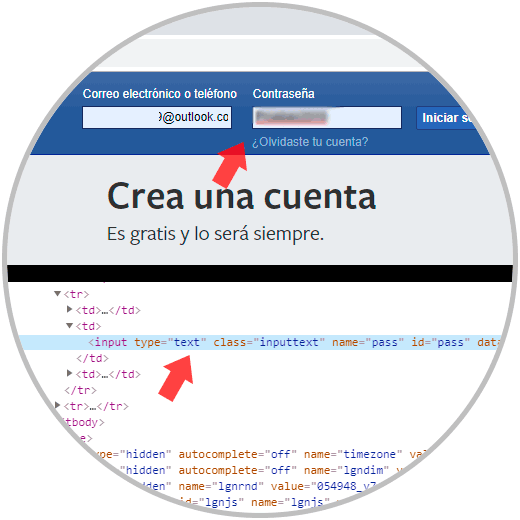 En la parte inferior encontramos la línea Input y allí seleccionamos únicamente la palabra “password” y la reemplazamos por la palabra “text”, ¿Qué ocurre?, si te fijas en el campo superior “Contraseña” notará que puedes ver tu contraseña sin problema: