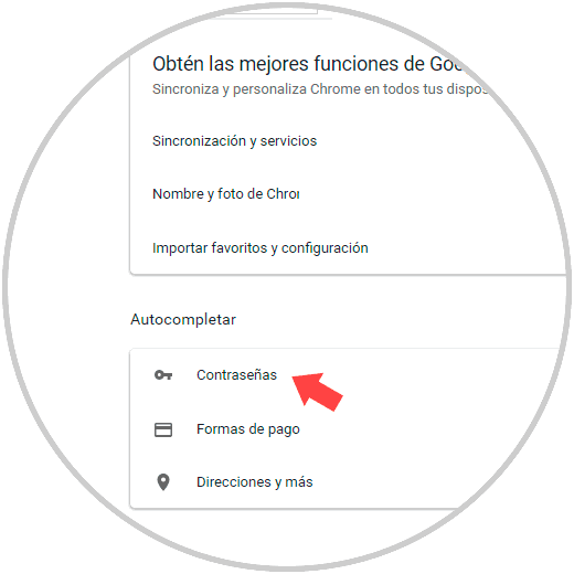 En la ventana desplegada encontramos la sección “Autocompletar” donde vemos la opción “Contraseñas”: