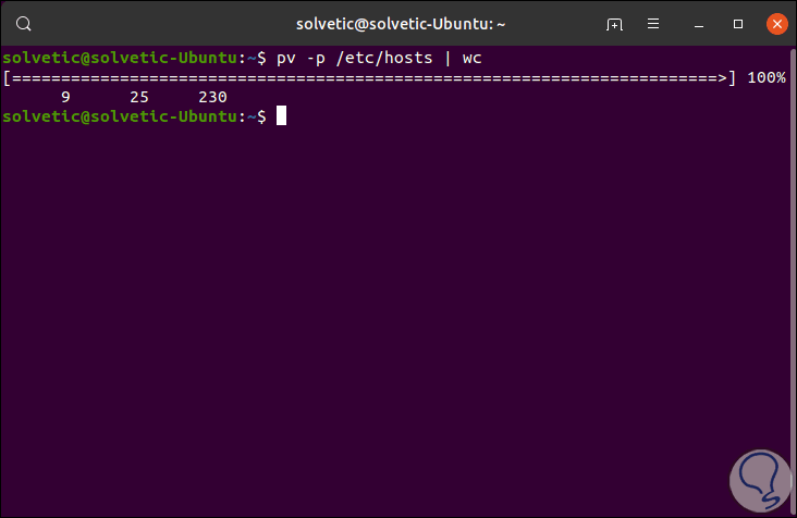 El comando pv ha sido desarrollado para permitirnos monitorear el progreso de un comando usando la función de tubería (pipe). Esto es práctico ya que con la ejecución de este comando tendremos acceso a detalles específicos como: