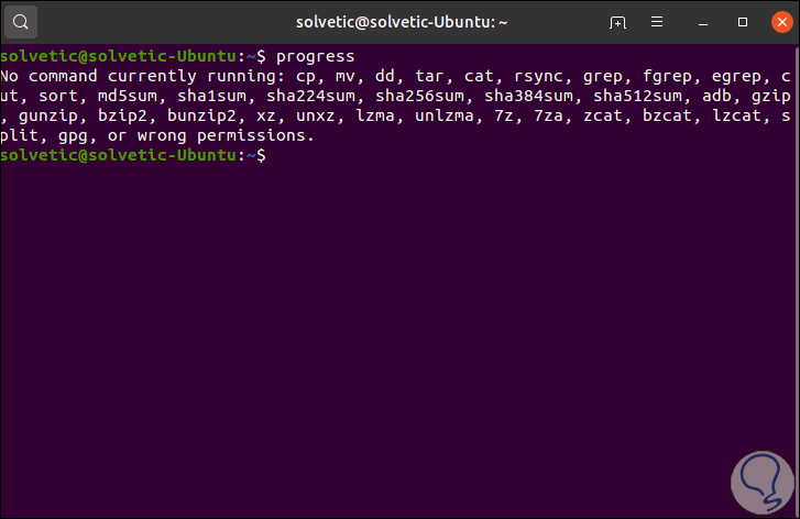 Una vez instalado podemos ejecutar directamente progress en la terminal para ver los comandos que son compatibles a usar: