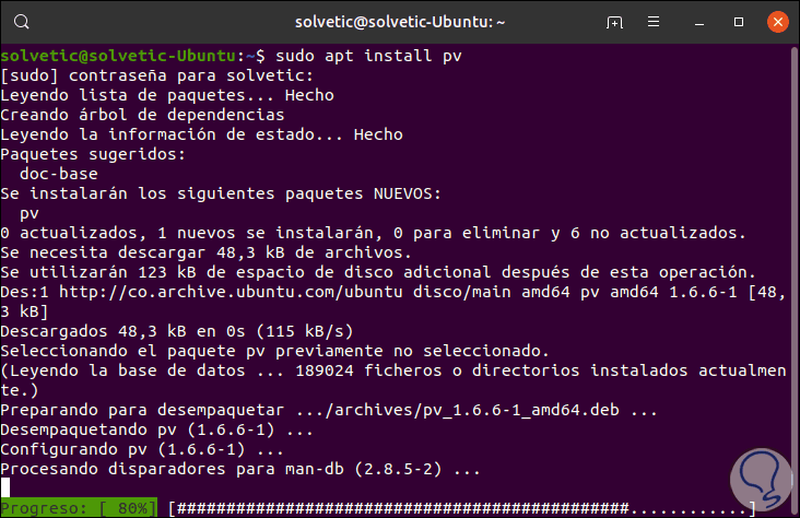 2. Cómo instalar comando pv en Linux