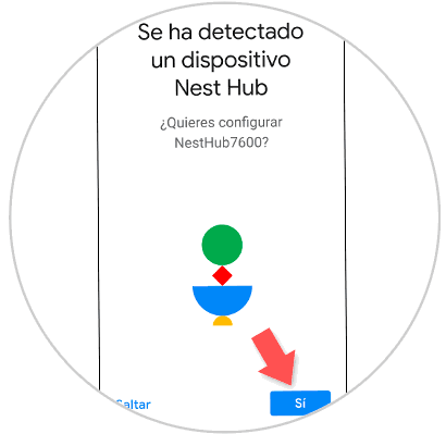 En la pantalla de tu móvil aparecerá lo siguiente, que indica que se ha encontrado el Nest Hub. Pulsa en “Sí”.
