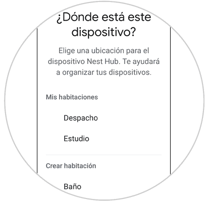 Ahora, debes indicar en que lugar de la casa se va a encontrar tu Google Nest Hub y una vez lo hagas pulsar en “Siguiente”.