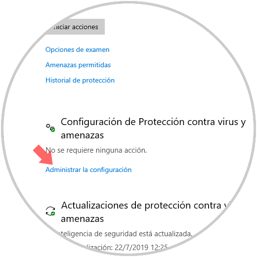 Allí seleccionamos la categoría “Protección contra virus y amenazas”: