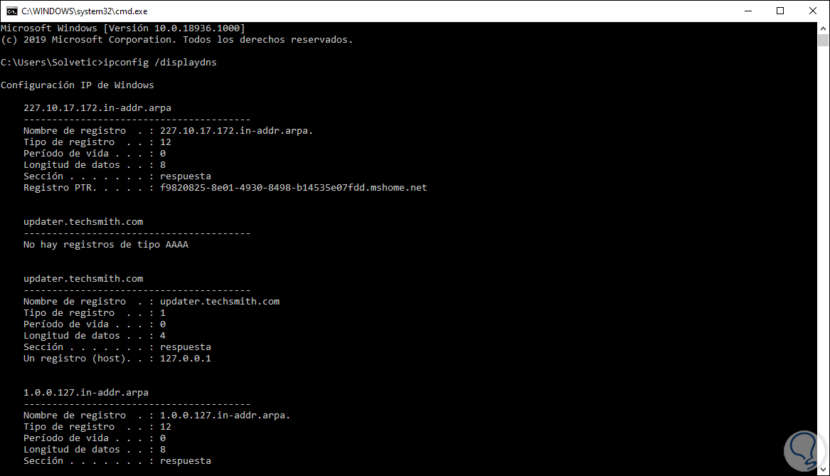 En el caso de Windows tú puedes validar la caché del DNS local ejecutando lo siguiente desde una terminal del símbolo del sistema: