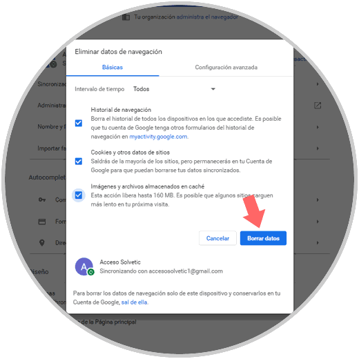 Una vez definido esto damos clic en el botón “Borrar datos”.