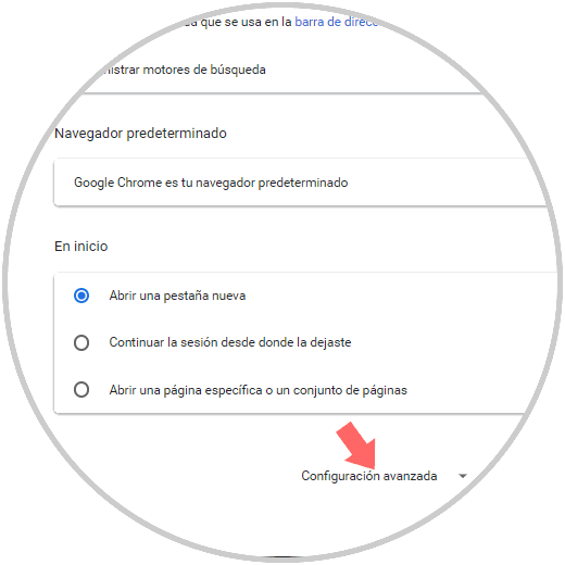 En la ventana desplegada vamos a la parte inferior y allí seleccionamos “Configuración avanzada”: