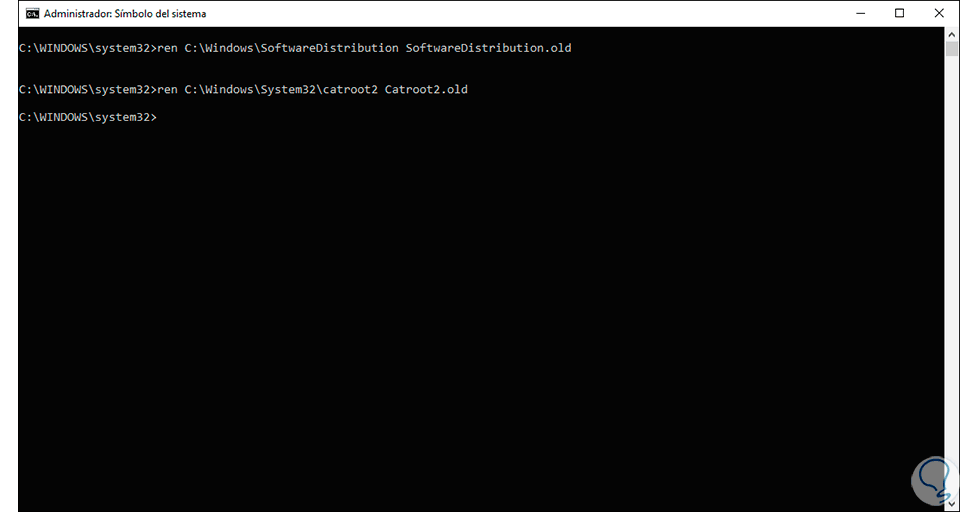 ren C:\Windows\SoftwareDistribution SoftwareDistribution.old ren C:\Windows\System32\catroot2 Catroot2.old