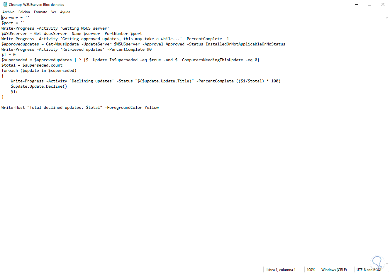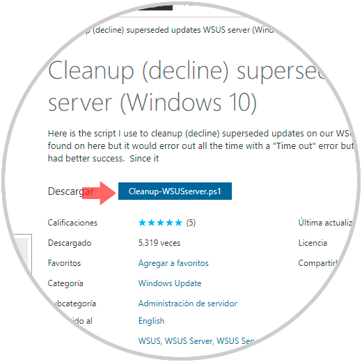 Este es un script gratuito gracias al cual se buscar limpiar las actualizaciones que han sido reemplazadas en el servidor WSUS, su descarga está disponible en el siguiente enlace: