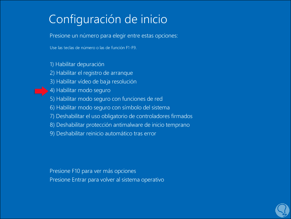 Pulsamos la tecla F4 para acceder en el modo seguro de Windows 10 y una vez accedamos abrimos el Explorador de archivos y vamos a la siguiente ruta: