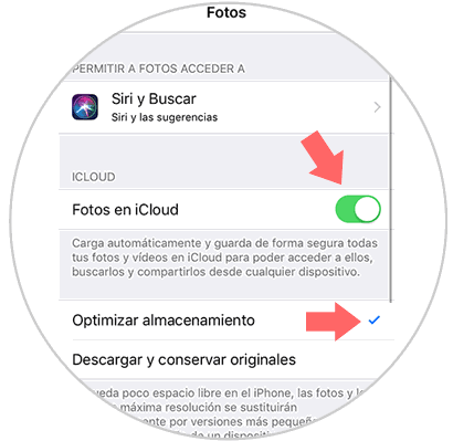 Una vez aquí , debes deslizar la pestaña de "Fotos en iCloud" para que quede activada.