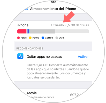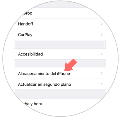 Lo siguiente que debes hacer es entrar en la zona de "Almacenamiento de iPhone"