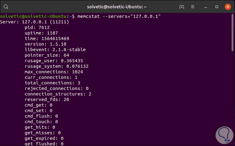 memcstat --servers="127.0.0.1" --username=solvetic --password=contraseña