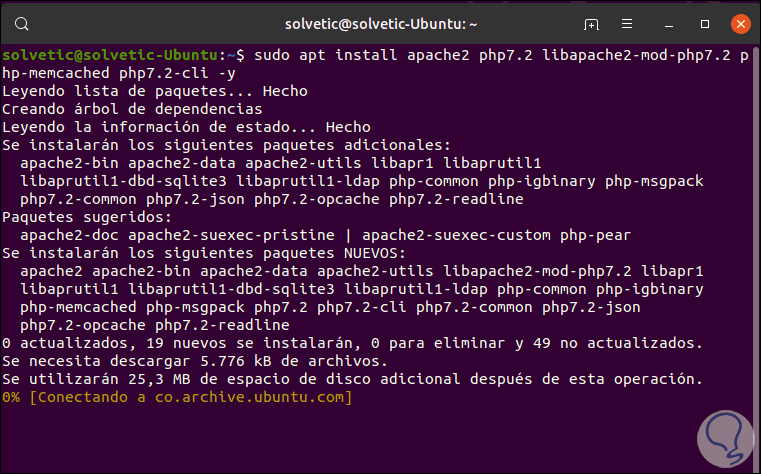 6. Instalación de Apache y PHP para usarse con Memcached Ubuntu 19.04 y Ubuntu 18.04