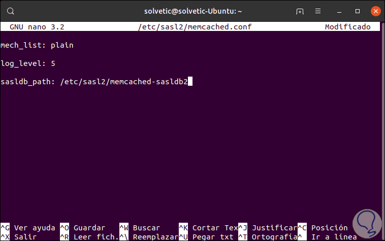 Para habilitar SASL vamos a añadir el parámetro -S al archivo /etc/memcached.conf, para esto abrimos de nuevo el archivo ejecutando: