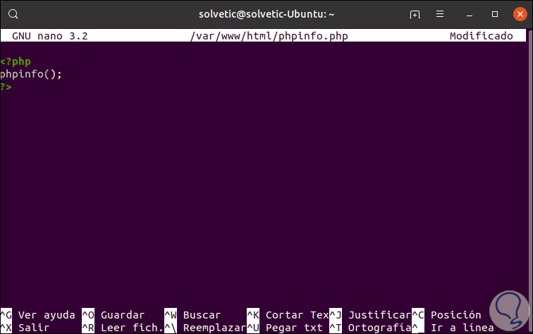 sudo nano /var/www/html/phpinfo.phpAllí ingresaremos lo siguiente: