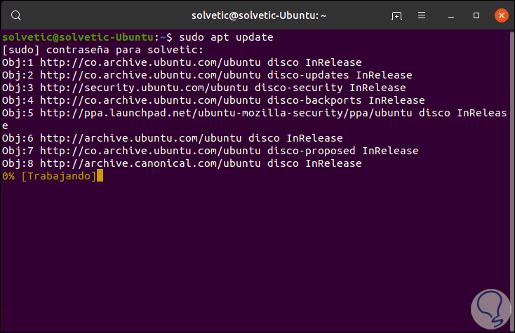 El primer paso a dar será actualizar los paquetes del sistema ejecutando: