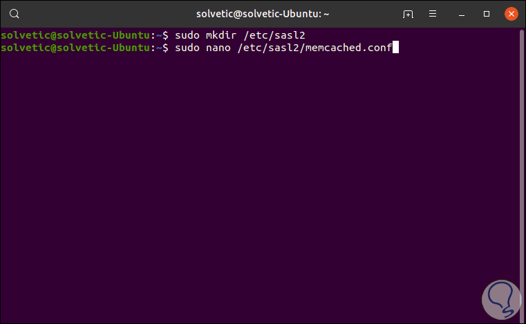 sudo mkdir /etc/sasl2 sudo nano /etc/sasl2/memcached.conf
