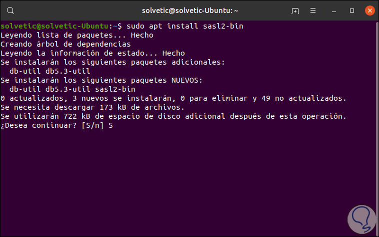 Ahora vamos a instalar sasl2-bin el cual es un paquete donde estarán disponibles herramientas administrativas para la gestión de la base de datos de usuarios de SASL, para su instalación ejecutamos: