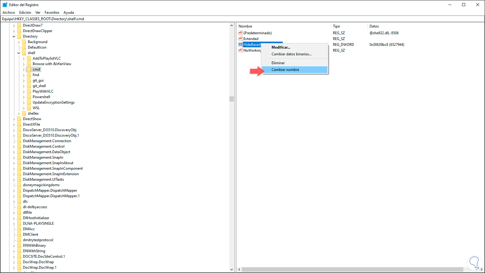 3. Cómo abrir el Símbolo del sistema en una carpeta Windows 10 desde el Editor de Registros