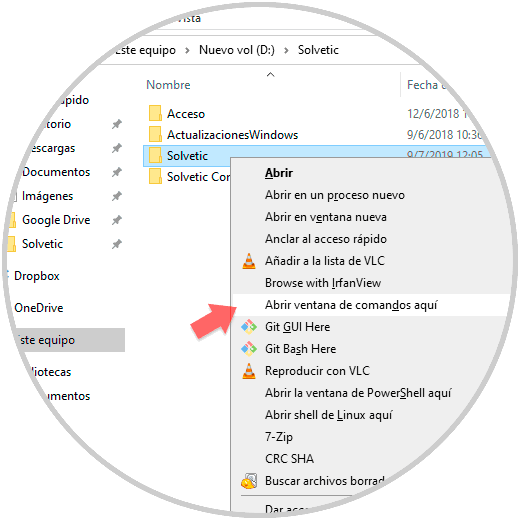 Gracias a alguno de los métodos que te ha explicado Solvetic será posible acceder directamente al símbolo del sistema desde una carpeta en especial.
