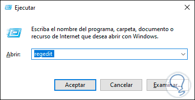 Después de esto usaremos las teclas siguientes y allí ejecutamos el comando regedit: