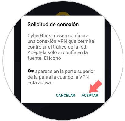 Pulsamos en Aceptar y se dará lugar al proceso de conexión de la VPN en Android: