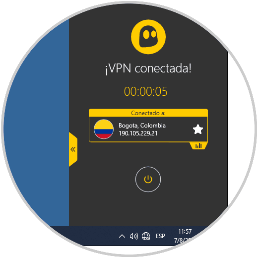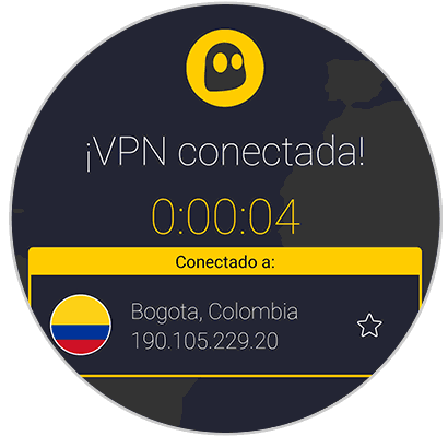 Una vez conectada veremos ubicación, tiempo y dirección IP asignada:
