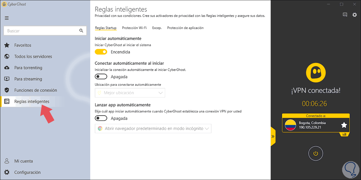 - Ejecutar CyberGhost al arrancar el sistema operativo.