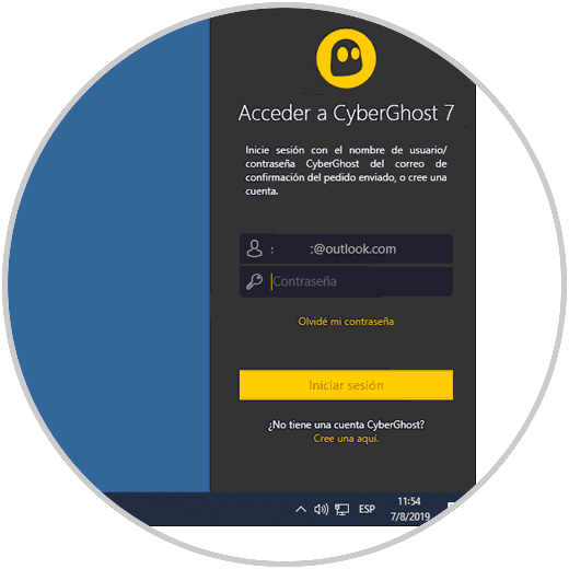 Una vez el proceso finalice debemos iniciar sesión en CyberGhost VPN: