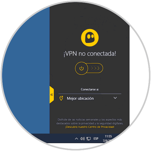 Como vemos ,la VPN no está conectada, para activarla basta con pulsar en el interruptor y si deseamos personalizar la ubicación, desplegamos las opciones en “Mejor ubicación”: