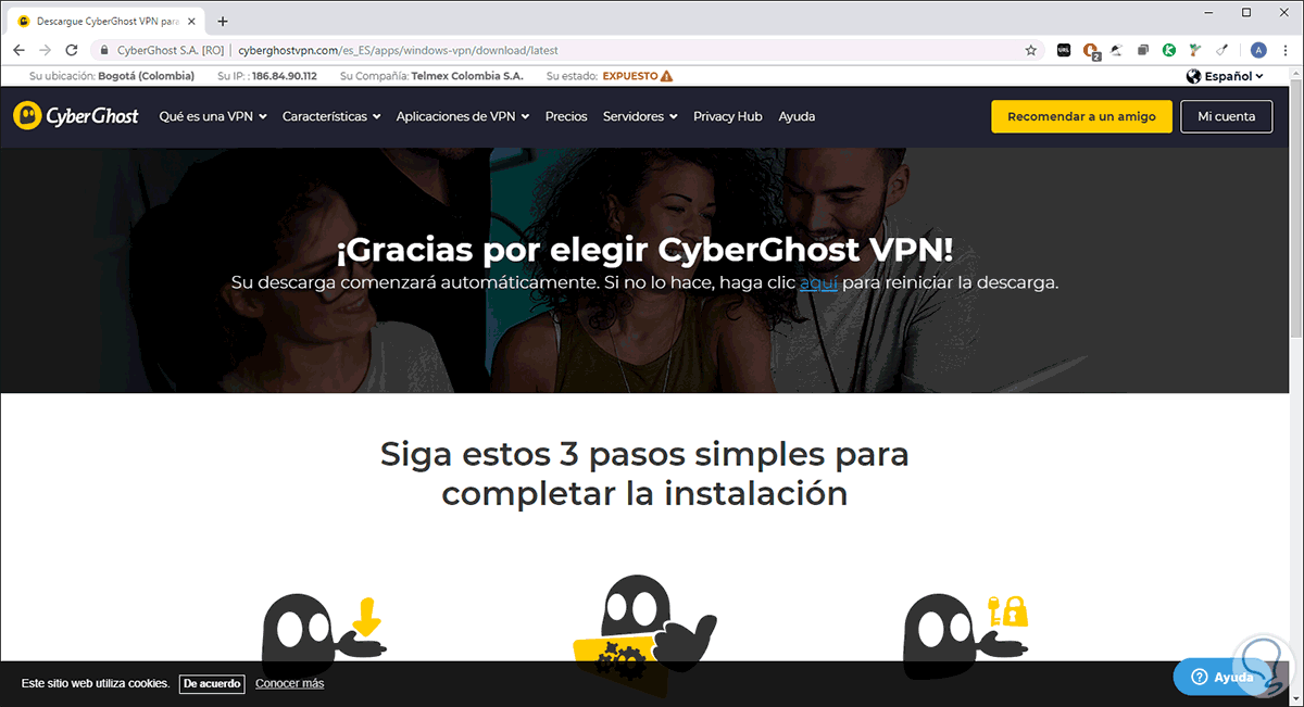 Solvetic te hablará de un software VPN muy completo llamado CyberGhost VPN.