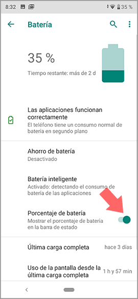 Ahora podrás ver como en la parte superior aparece el porcentaje de batería que queda en tu teléfono.