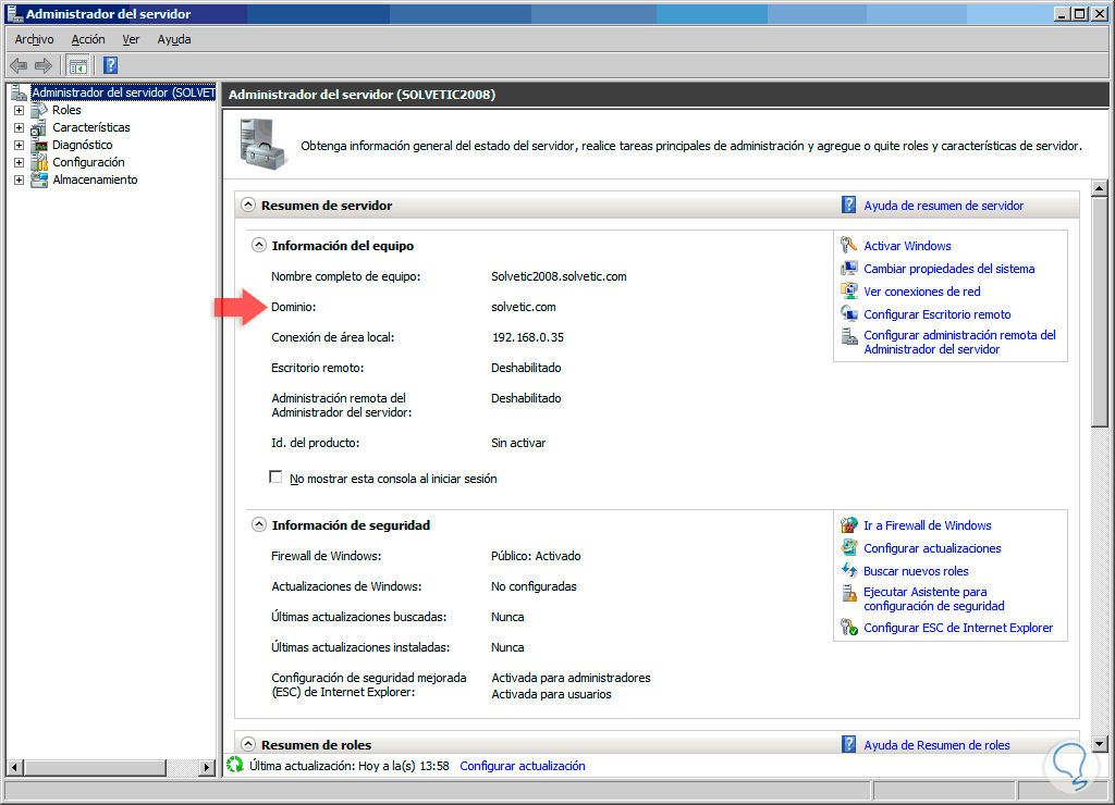 Esta información más detallada la podemos obtener en el Administrador del servidor: