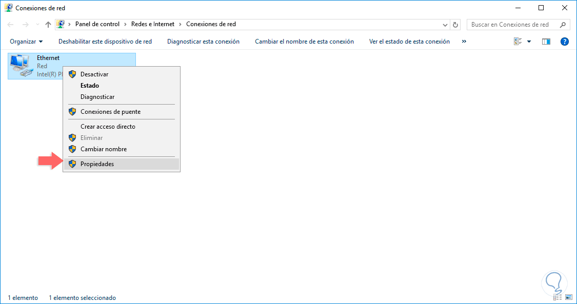 Damos clic derecho sobre el adaptador y seleccionamos “Propiedades”: