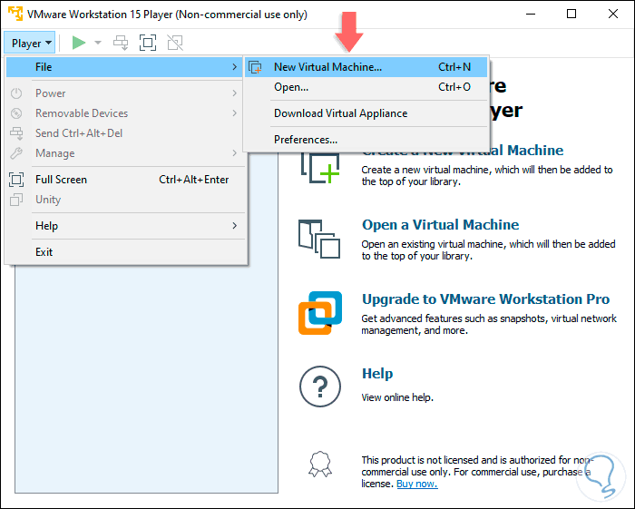 - Dando clic en la línea Create a New Virtual Machine en el panel central