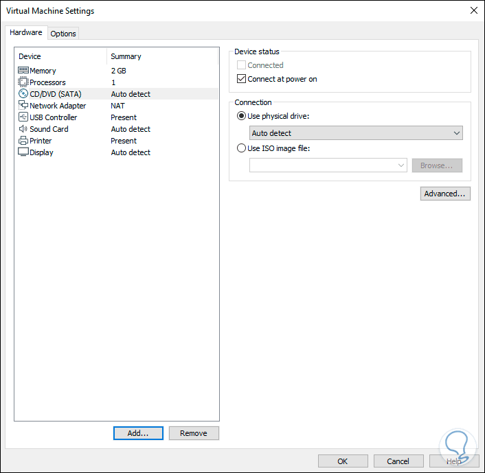 Allí seleccionamos “Remove” para quitar el disco creado por defecto: