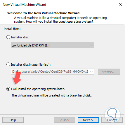 Se desplegará el siguiente asistente donde seleccionamos la casilla “I Will install the operating system later”: