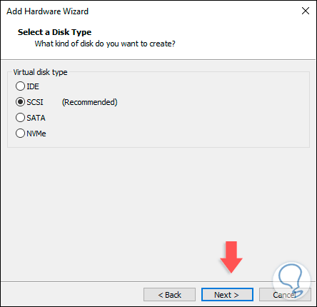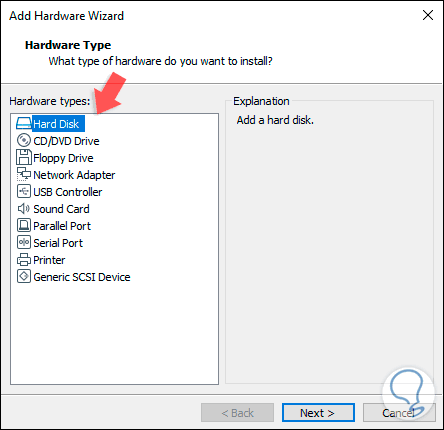 Damos clic en “Add” y seleccionamos “Hard Disk”: