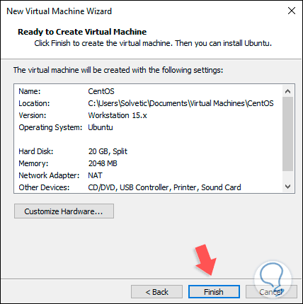 Allí damos clic en el botón “Finish” para crear la máquina, ahora veremos que la máquina virtual ha sido creada: