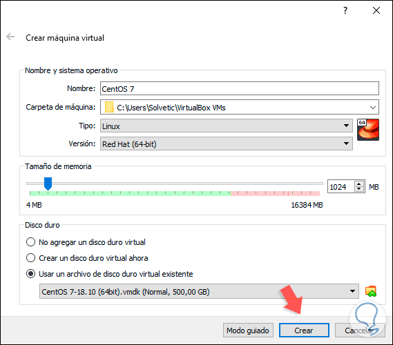 Para dar inicio a este proceso en VirtualBox debemos crear una máquina virtual, para ello contamos con las siguientes opciones: