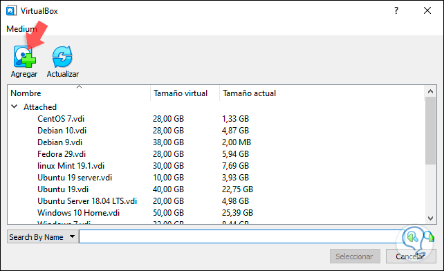 Allí damos clic en “Agregar” e iremos a la ruta donde está el archivo VMDK: