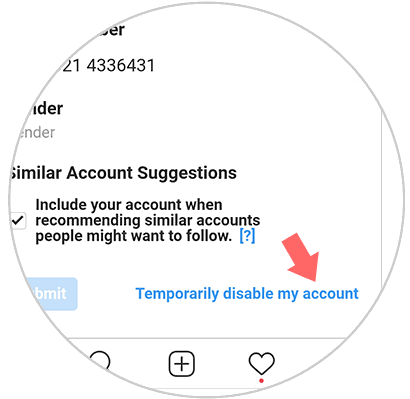 Pulsamos en la línea “Temporarily disable my account” ubicada en la parte inferior.