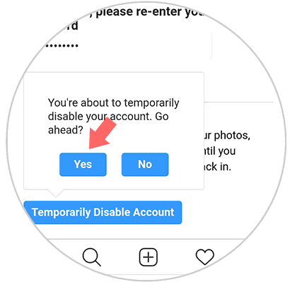 En la siguiente ventana, al igual que en el móvil, veremos un breve resumen de la deshabilitacion. Debemos seleccionar una razón por la cual vamos a realizar el proceso e ingresar la contraseña actual. Damos clic en el botón “Inhabilitar cuenta temporalmente” para completar el proceso.