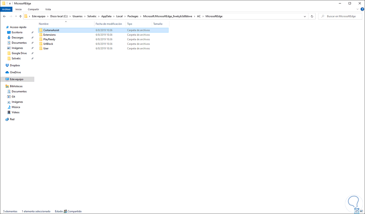 Pero si manejas una versión de Windows 10 anterior a la edición 1709 Fall Creators Update, las cookies de Microsoft Edge estarán disponibles en las siguientes rutas: