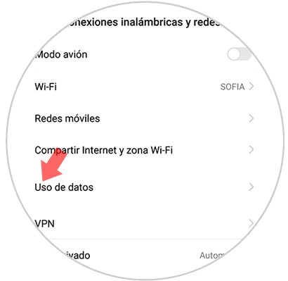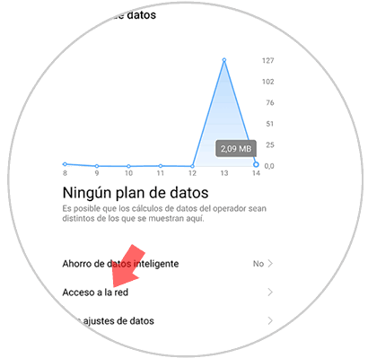 En la siguiente ventana veremos un gráfico con el uso actual de datos móviles y algunas opciones adicionales. Ahora pulsamos en la opción “Acceso a la red”
